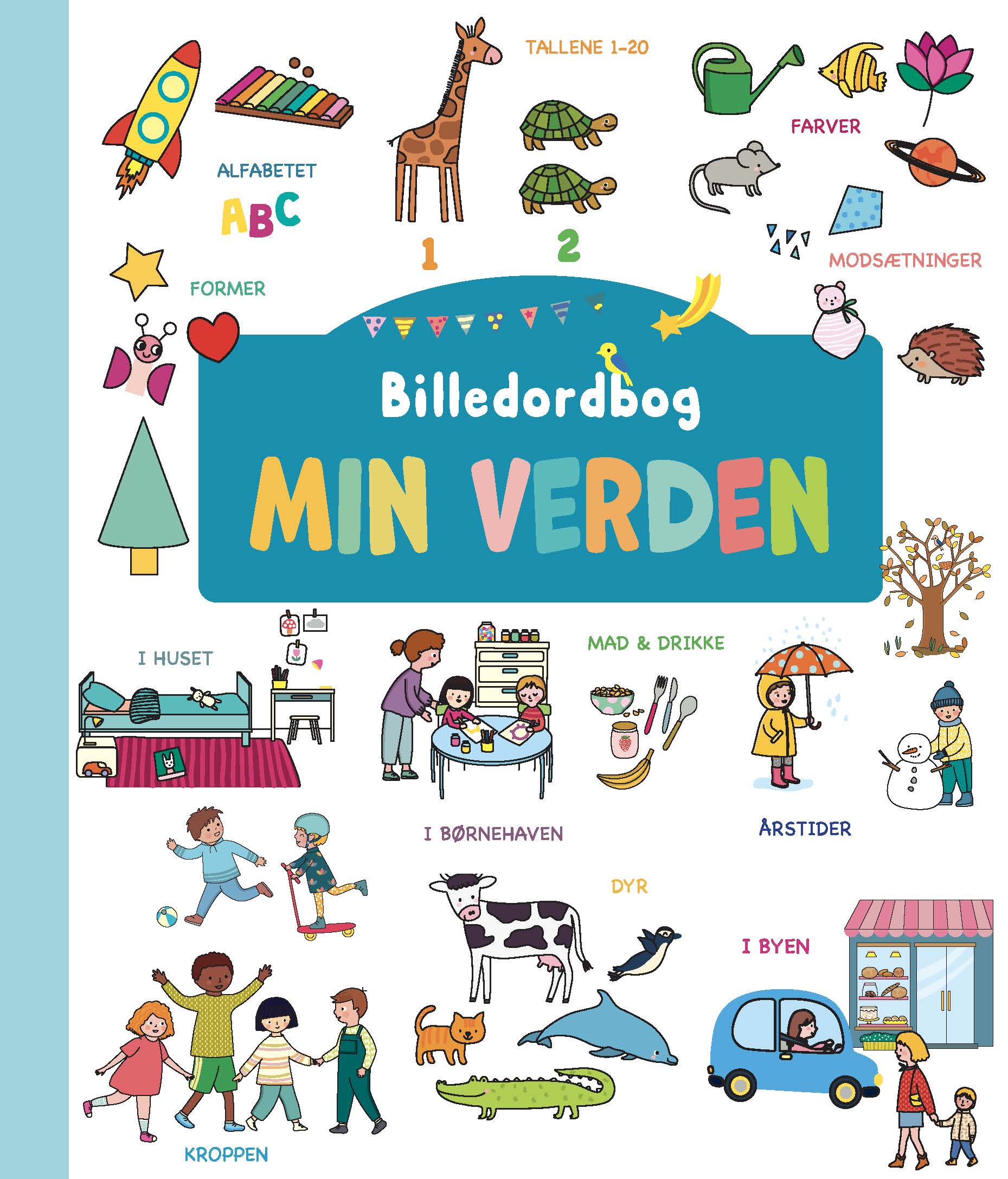 De 15 overordnede temaer introducerer barnet for en masse ord fra en genkendelig verden, og der er rigtig meget at kigge på og snakke om.
