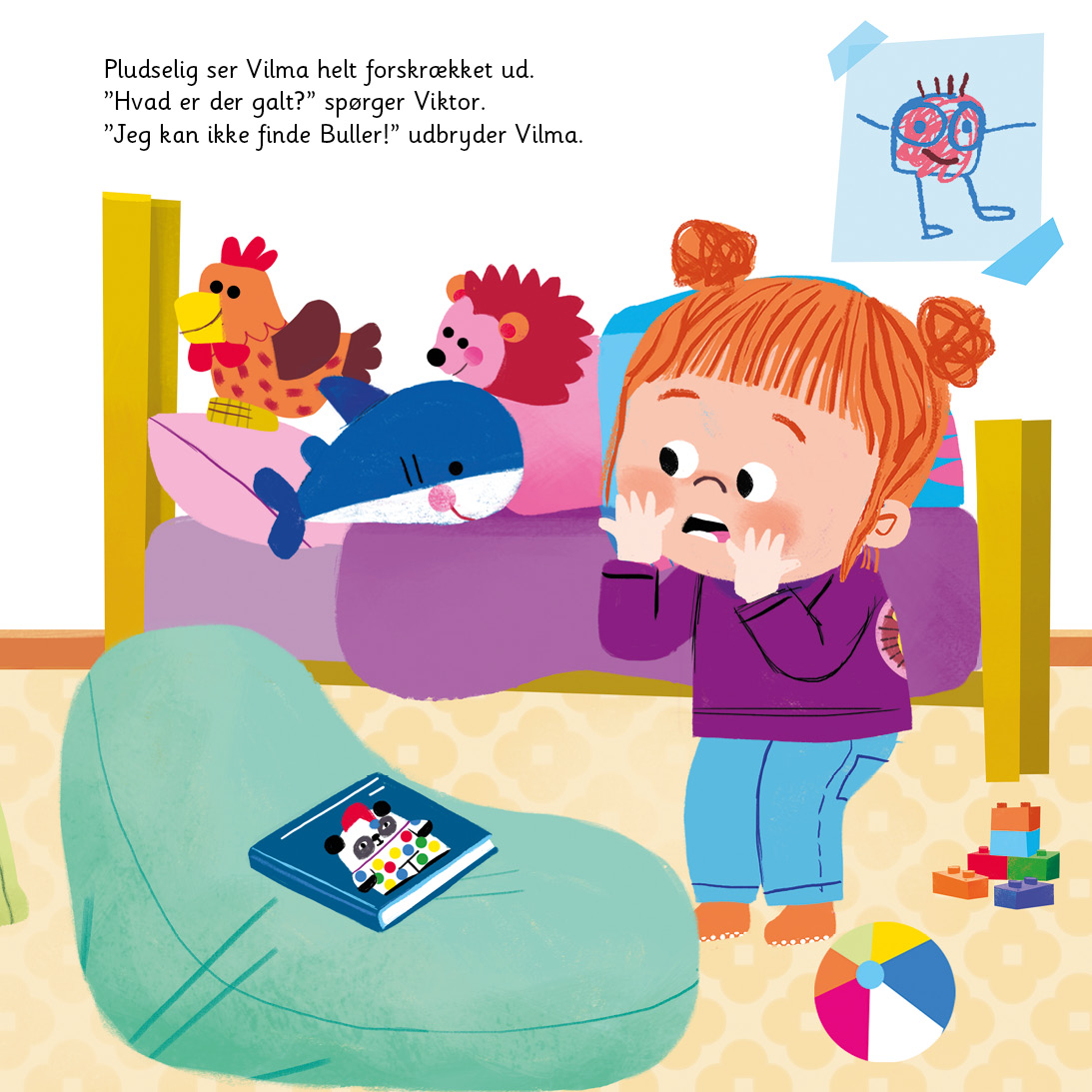 Vilma elsker sin bamse Buller, og den følger med hende overalt. Men en dag er bamsen pludselig væk! Vilma bliver meget ked af det, og alle må i gang med at lede …