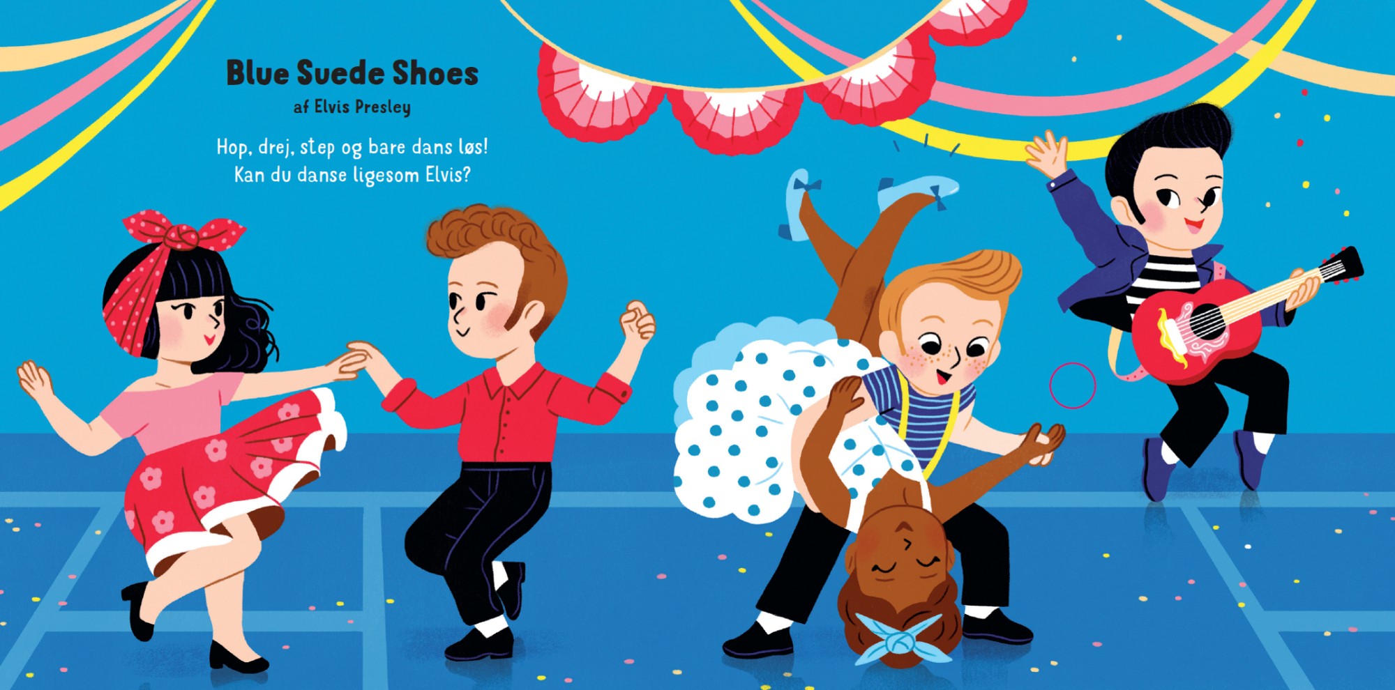 Til sidst i bogen er der en lille, sjov lyt-og-find-leg. Så tag bogen i hånden og spring ud på dansegulvet!