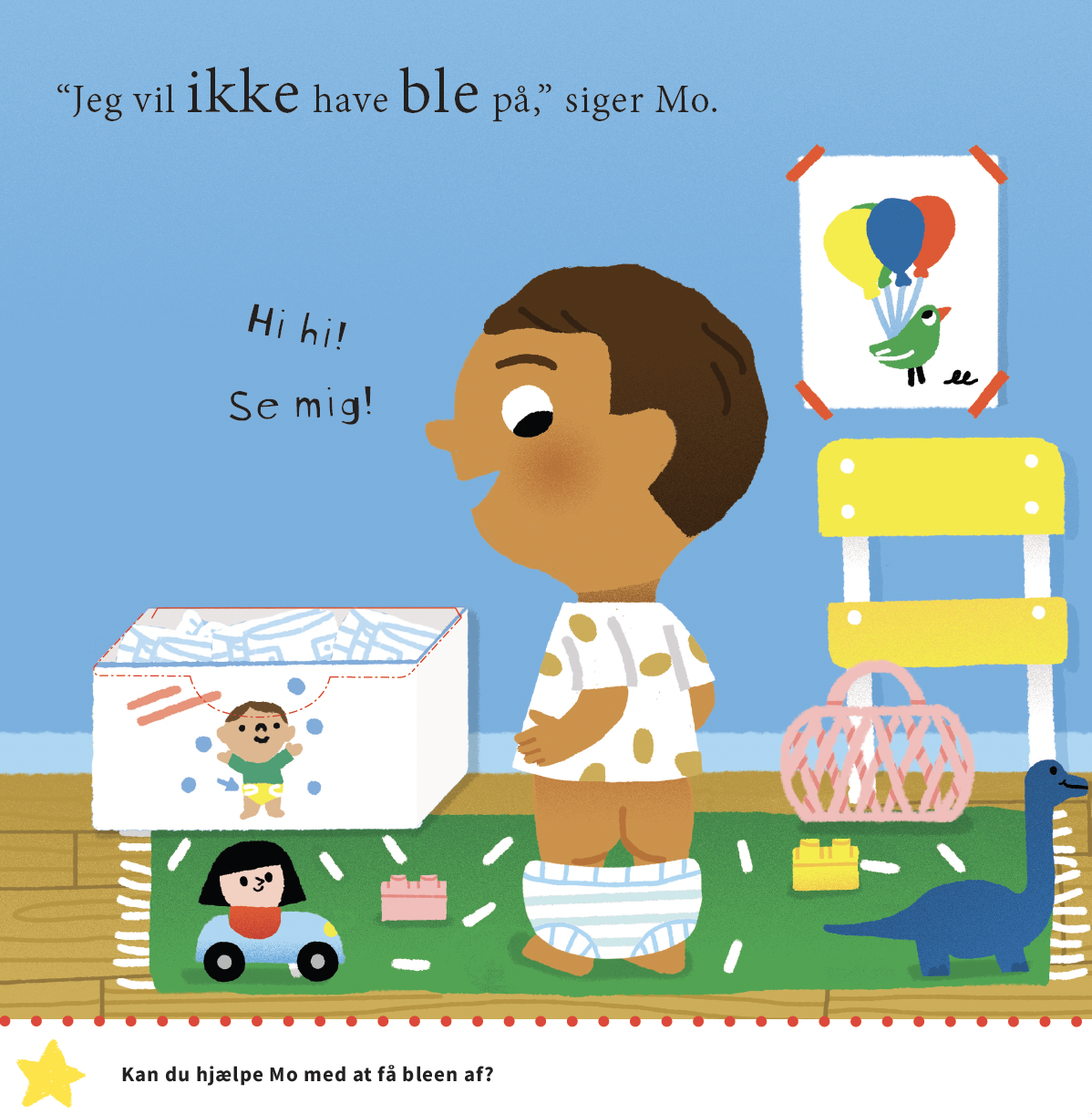 Små skridt er en serie om store overgange for de små børn. Med enkle spørgsmål til barnet er bøgerne et godt udgangspunkt for samtaler mellem barnet og den voksne. Samtidig har bøgerne sjove effekter på hvert opslag, hvilket taler til barnets nysgerrighed og træner finmotorikken.